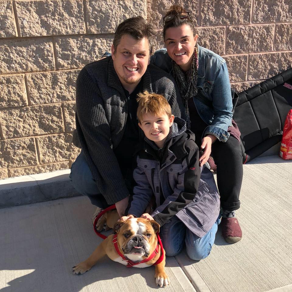 Collin, Parker the bulldog, Finn, and me, Danielle